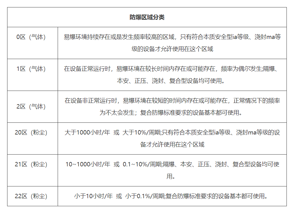 爆炸性危险区域的分类