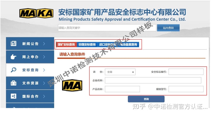 查询安标认证的产品统一网站是国家安标中心,见如下页面: