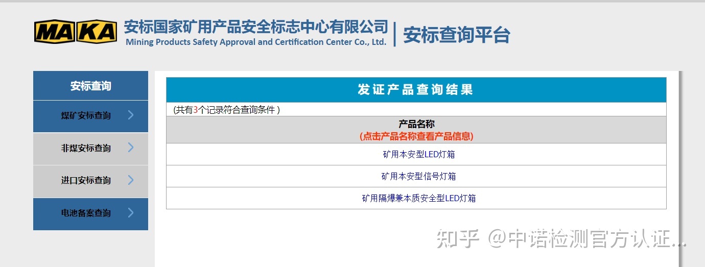 用户只要输入企业名称或者安标编号、产品名称、型号任意一个,都可以查询到对应的安标企业和产品。如果用户是要查询某种安标产品,比如具有煤安认证的灯箱,那可以在煤矿安标查询这栏的产品名称输入产品名称关键字“灯箱”,就会跳出有做过煤安认证的有效期内产品名称带有灯箱的产品目录,用户只需要点开细看就可以查找所需要的产品了。